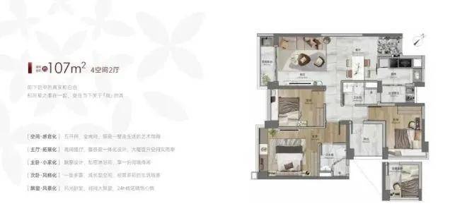 全屋智能化铺设,提升生活便捷性 。大主卧设计,空间宽敞舒适 。双阳台设计,增加采光通风与活动空间 。适合人口较多的家庭,满足不同家庭成员的生活需求 。