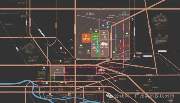 项目交通配套:项目社区楼巴,直通14号线从化客运站地铁口、快线四站到嘉禾望岗。距离京珠、大广高速入口不足5分钟车程,到广州白云机场仅20分钟,两小时内可快速到达粤港澳大湾区主要城市。地铁14号线从化客运站距项目约9公里,未来规划中的地铁42号线将缩短至1公里,交通网络逐步完善。