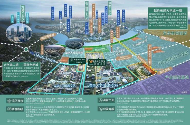 与菁英为邻,高文化居住氛围,13所高校为邻,以华工暨大为景,耳濡目染文化熏陶;