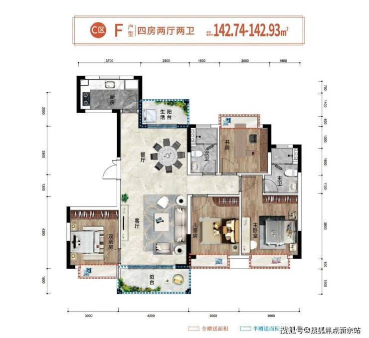 🔹共享空间,厨餐客阳台一体,阖家欢喜满堂