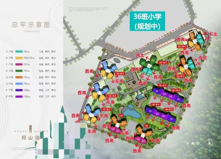 观山海家园项目规划由12座住宅楼+裙房商业+花园景观廊架主体组成,1栋1/2/3单元23-24层,2梯4户;2栋1/2/3单元19-24层,2梯5户,3栋1/2单元和4栋1/2单元17层,2梯2户;5/6栋25层,2梯4户;