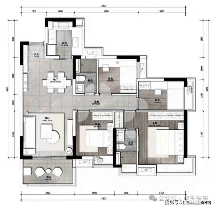 主卧套房带独立卫浴 + 衣帽间,保障私密性与仪式感;