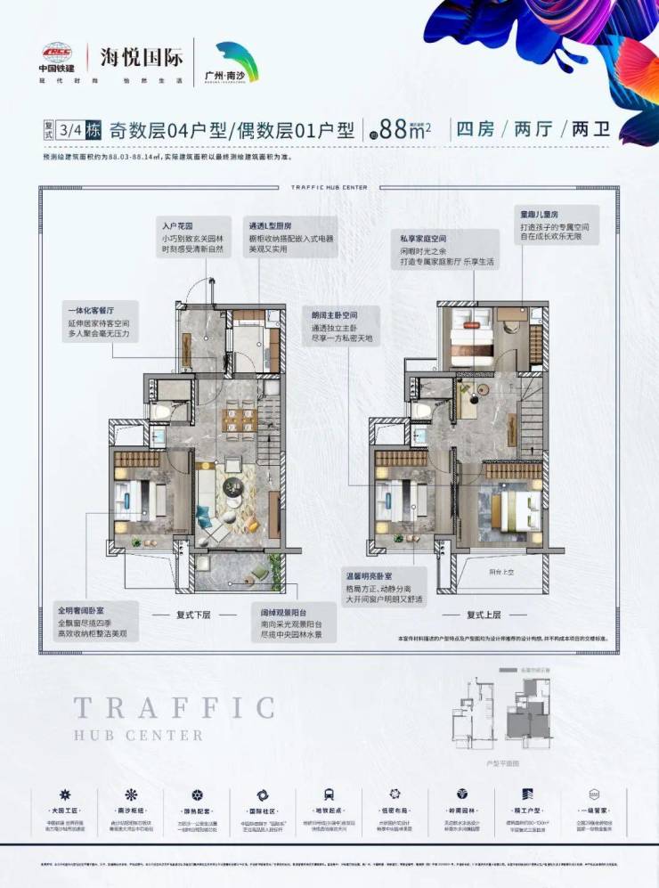 平层户型涵盖了99-131㎡/复式户型涵盖了81-101㎡三至四房,目前主要在售为复式产品更多一点,平层也还有少量尾货,整个项目已经是现楼,所见即所得!