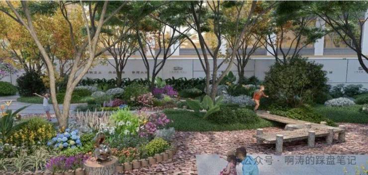 社区园林景观组团及重要节点的植物营造考虑四季不同的色彩变换,并考虑植物层次的搭配组合,打造绿树林荫、四季有花、四季有景的生态剧场。