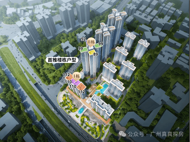 【板楼】有两个户型,首推110~112㎡,总共17层,两梯两户。