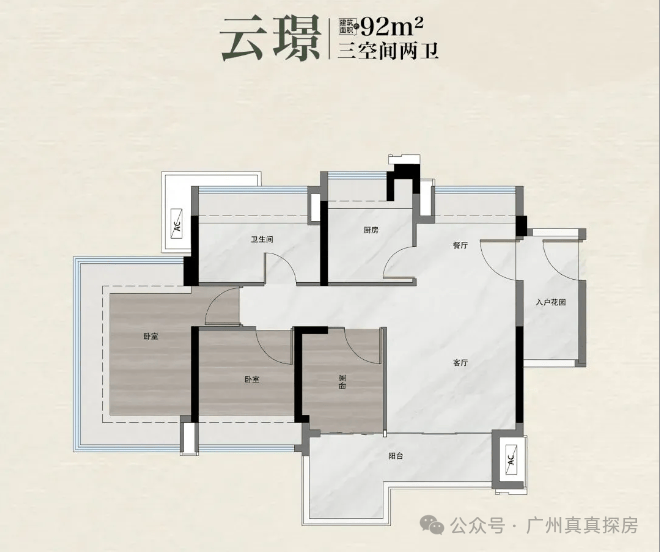·建面约92㎡3房(西南向),总价256~294万,折合单价2.78万/㎡起。
