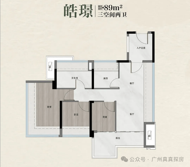 ·建面约89㎡三房(东南向),总价250万~288万,折合单价2.8万/㎡起。