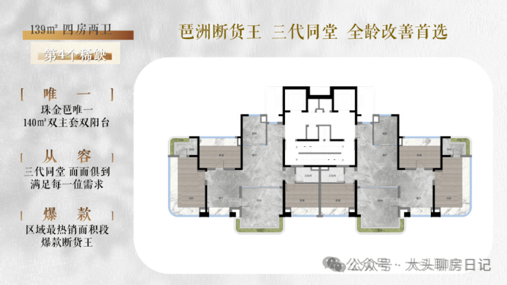 3、建面约187m²央楼王4房