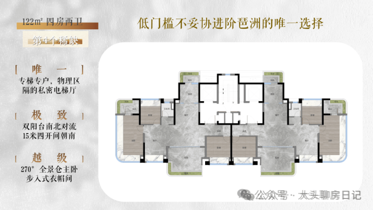 1、建面约122m²跃升低密4房