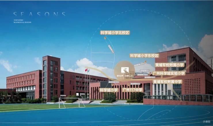 【全维生活配套】教育矩阵:自建12班制幼儿园采用瑞吉欧教育体系,1公里范围内分布科学城小学、黄埔军校小学等5所省一级名校,117中学与黄埔军校中学构成双中学保障。