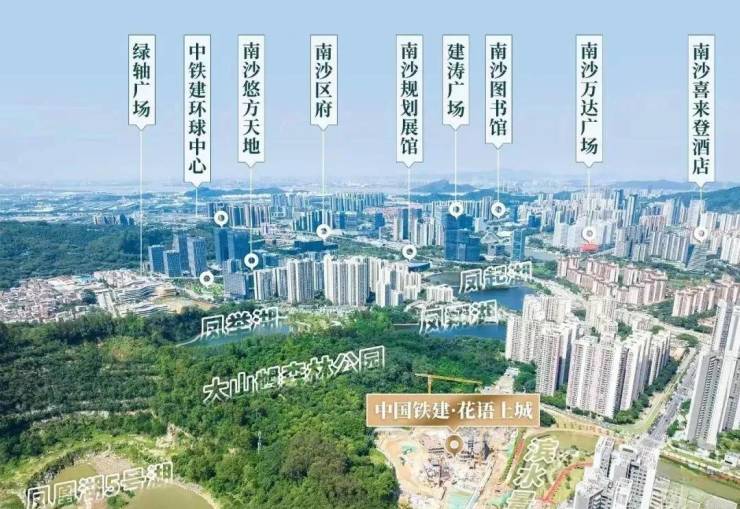 花语上城属于中铁建南沙坦尾村旧改的融资地块项目,地处大山乸森林公园山脚下;