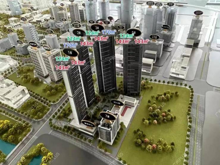 项目拟建4栋40多层高的住宅(1#高40层,2-3#高44层,5#高41层),两梯三户,底下规划有1所12班幼儿园+1栋自持物业。