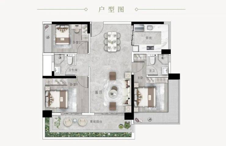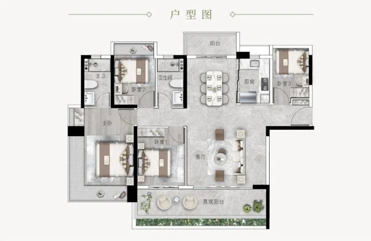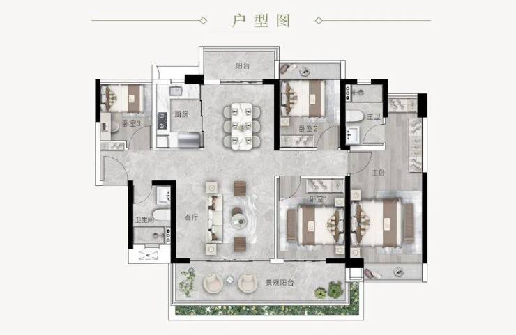 •休闲娱乐:【观璟】以四季植物主题打造【四大专属花园】,满足家庭多元需求;楼下架空层打造全龄段休闲活动空间,为不同客群定制化生活方式。