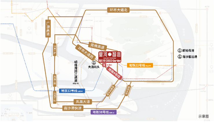 明珠湾双生活环联通,距离明珠湾大桥约2公里,轻松畅达南沙各大板块。