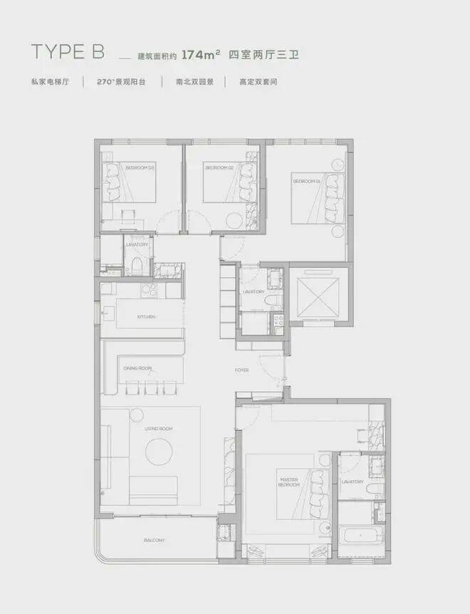 建面174平四房三卫
