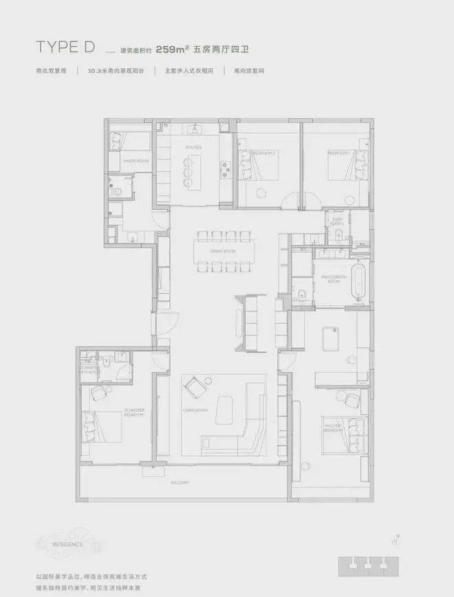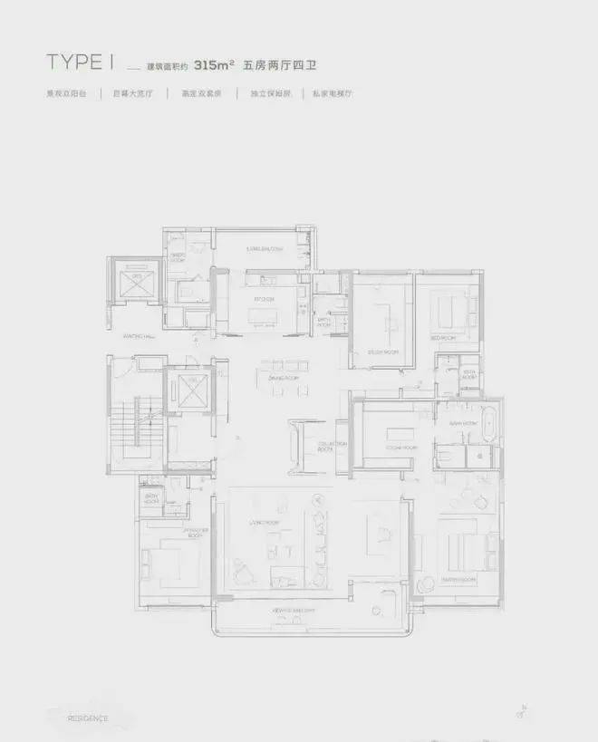 缦云规划42栋大平层洋房,所有楼栋均为16-17层纯板式小高层设计,,专梯专户,主打建面约145㎡-315㎡三至五房,虽有多种户型选择,但因为是新规前产品,户型使用率上并不高