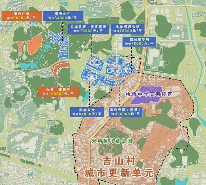 除了家门口待建的学校,周边现有五大省级名校——清华附中、执信中学、天河外国语学校、广州中学、广州岭南中学(暂定名)。