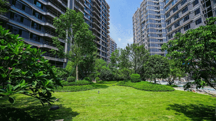 作为整个项目率先交付的园林,中央公园的绿植覆盖最多,生态属性拉满。