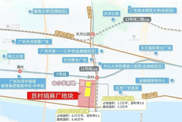 地块东北侧距离地铁5号线与11号线交汇的员村站仅150m,是天河难得的比较靠近地铁站的盘,前往珠城、琶洲、天河北、白鹅潭等地很方便,通达性很强