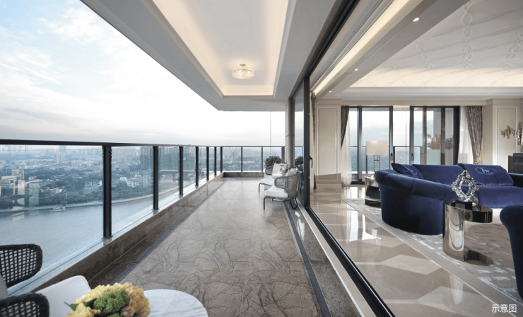 这样的跑道式阳台,让你拥有巨幕视野,还能营造多种生活场景,喝茶聊天烧烤都能轻松容下。