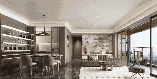 空间灵活,书房可与客餐厨阳台拉通,构筑建面约60㎡“LDKG+X”超大欢聚厅,尺度惊艳。