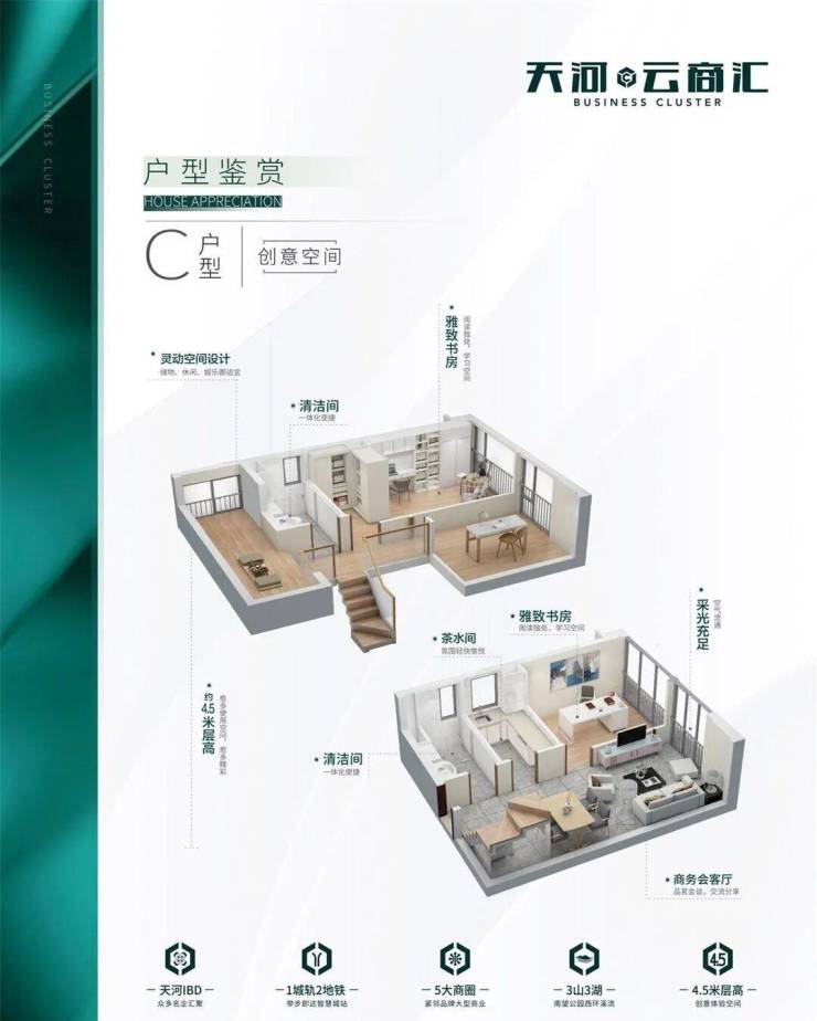 💎【稀缺资产】4.5米层高城芯小户,双层创变空间,精彩生活翻倍