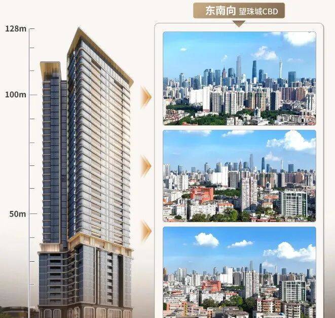 东南向则是小蛮腰和东西塔闪耀的珠江新城。可以想象,充满生气的夏日傍晚,站在南向大阳台,看着CBD的灯光慢慢亮起,感觉它的璀璨,却又与之保持一定的距离。繁华而不喧闹,这就是高品质住区的生活方式。