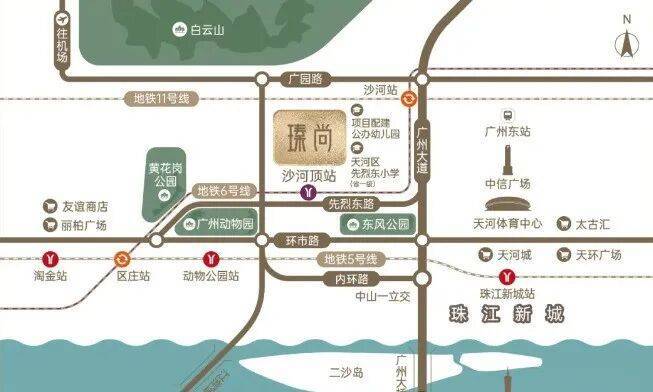 项目东面直线距离不到1公里就是白云山,2公里范围内更有六公园(广州动物园、云台花园、麓湖公园、黄花岗公园、东风公园、燕岭公园)环绕,形成天然氧吧。