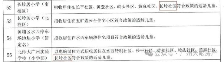 距离最近的俩小学一是长岭居小学(南校区),一是北师大广州实验学校(小学部)——根据《黄埔区2023年义务教育学校招生工作实施细则》,这俩学校均对口长岭社区符合政策的适龄儿童,是以不排除也会纳入招生范围。