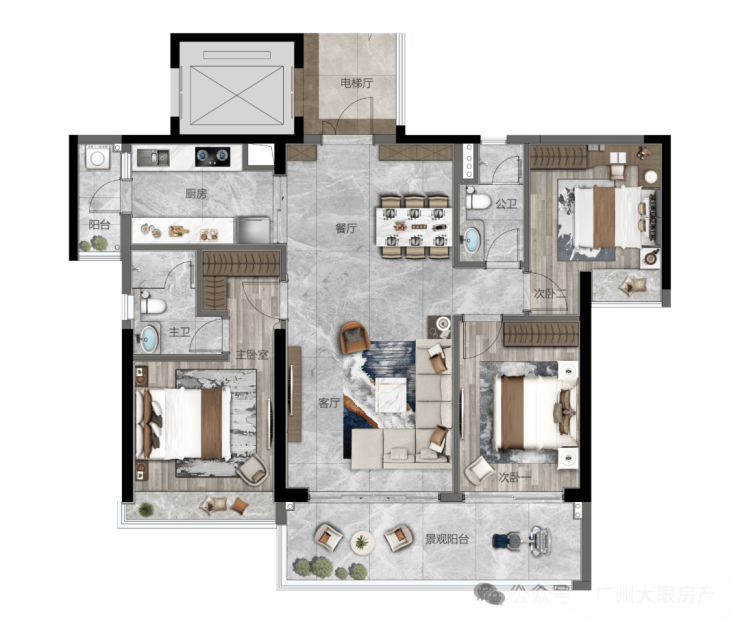 打破景观限制,板式设计排布,南北对流,双阳台,全明户型,全南望山;