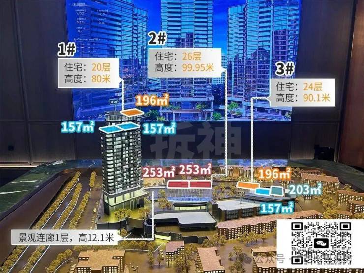 中间2栋为楼王单位,26层高,两梯两户,户型全部为253平大平层,层高达到3.3米。