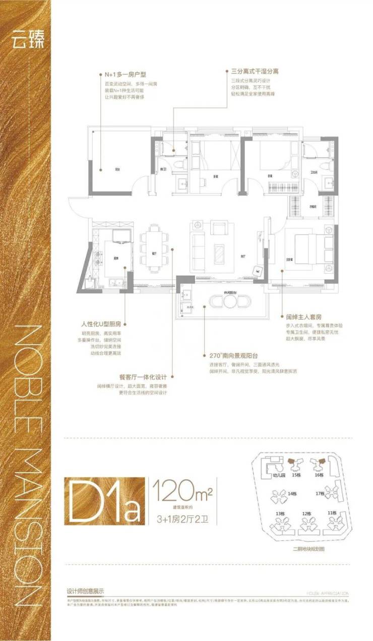 户型D-1,建面约120㎡,3+1房2厅2卫
