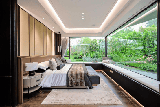 152㎡双套房设计,专梯入户,约3.3米豪阔层高,6开间全南向,客厅开间约6米,搭配约9米长大阳台,空间尺度超豪华,四个卧室都能放1.8的大床。