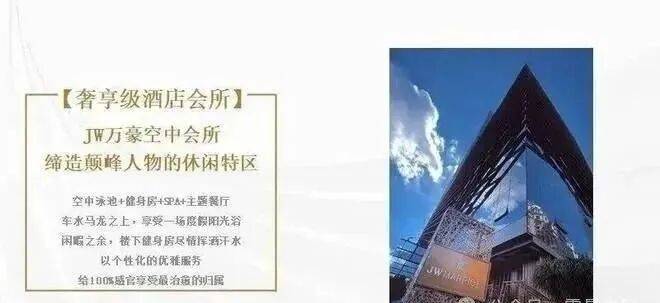 君玥公馆、嘉裕公馆等项目品牌,秉承高端酒店地产的理念打造世界藏品,续写嘉裕传奇。项目规划:顶级酒店+酒店行政公馆+甲级商务+高端商业28-46层:JW万豪酒店16-27层:嘉裕中心·J公馆15层:高端私人酒店会所1-14层:甲级商务写字楼、精奢商业、高端影视会所
