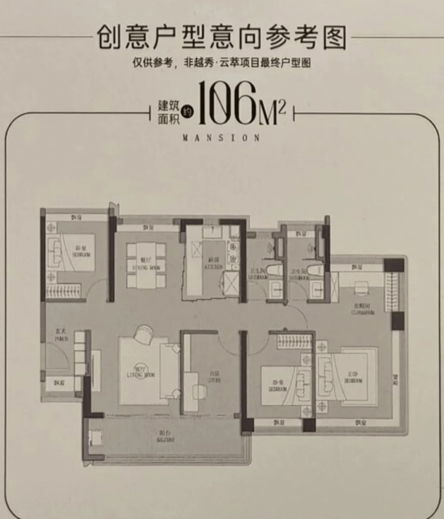 越秀云萃提供的户型面积段覆盖了从87平方米到117平方米的范围,包括88㎡3+1房、106㎡四房以及117㎡五开间朝南的大平层户型。每个户型设计都充分考虑了空间利用率和居住舒适度,尤其是通过“无边界飘窗”设计,增加了实际使用面积,提高了居住体验。