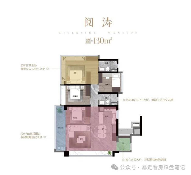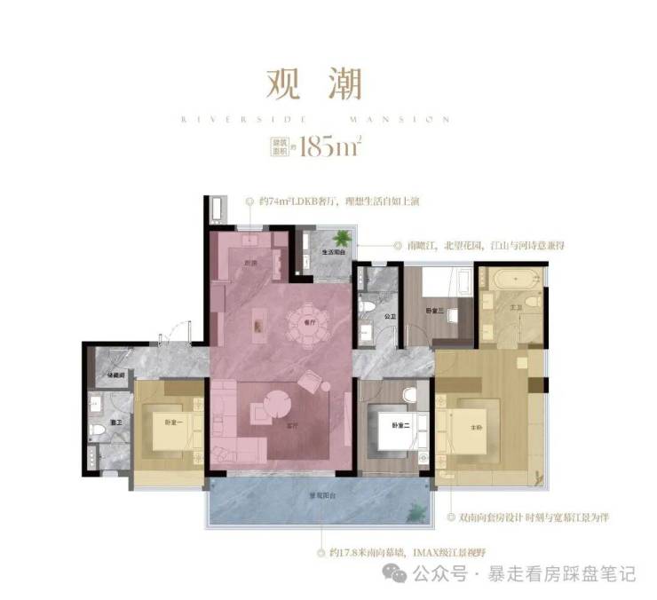 【户型】约130/143/180㎡全南四房,使用率约100%