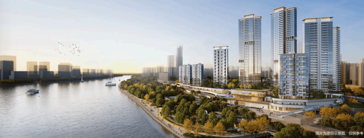 特邀著名⼤师:冼剑雄、郭捷、赖送,联⼿打造江玥上城进阶新品,呼应珠江上源滨江界⾯,融⼊海派⻛格⾼奢酒店设计理念,以奢想⽆界、归家礼仪、造极于简三⼤理念进⾏空间造境,打造⾼低错落、滨⽔友好、灵动呼吸的⾃然⽣活场