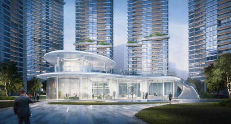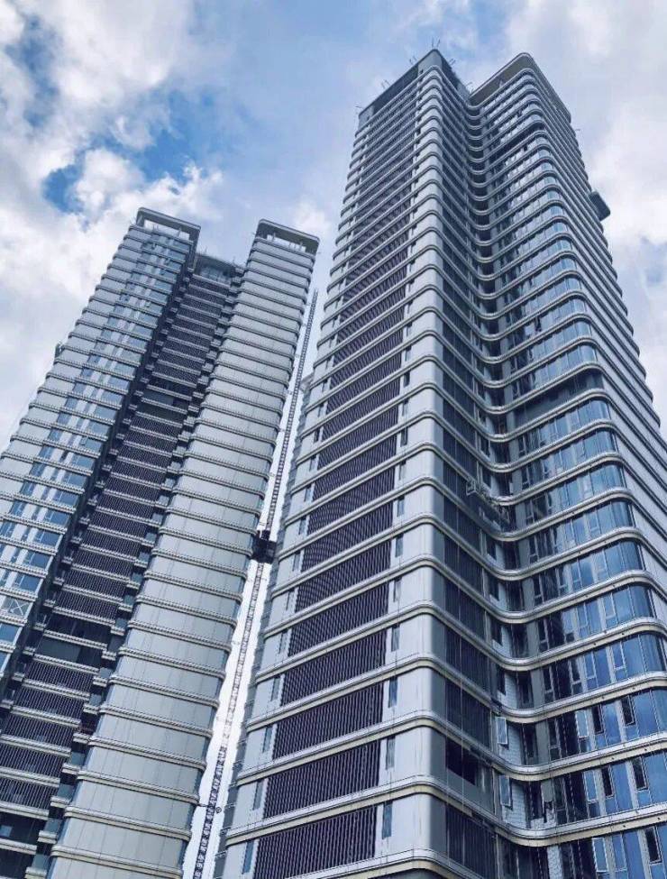 - 为了更好地映衬美妙江景与华丽城景,立面采用全幕落地玻璃幕墙,并通过将开启扇窗框调至飘台面、减少窗框横肋等手法,让立面更简洁,演绎镜面美学,擎画一湾江景,白天倒映云霞与江景油画,夜晚与建筑群灯光秀共舞。