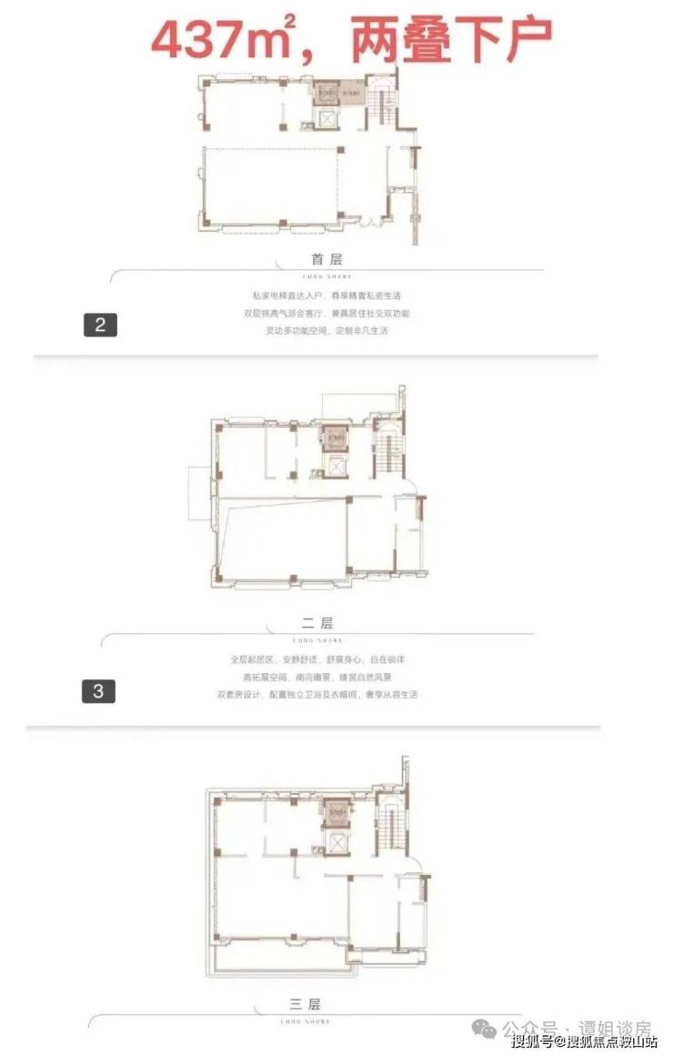 产品户型:两叠(上叠392㎡、下叠437㎡),三叠(上叠 285㎡、中叠279㎡、下叠305㎡)