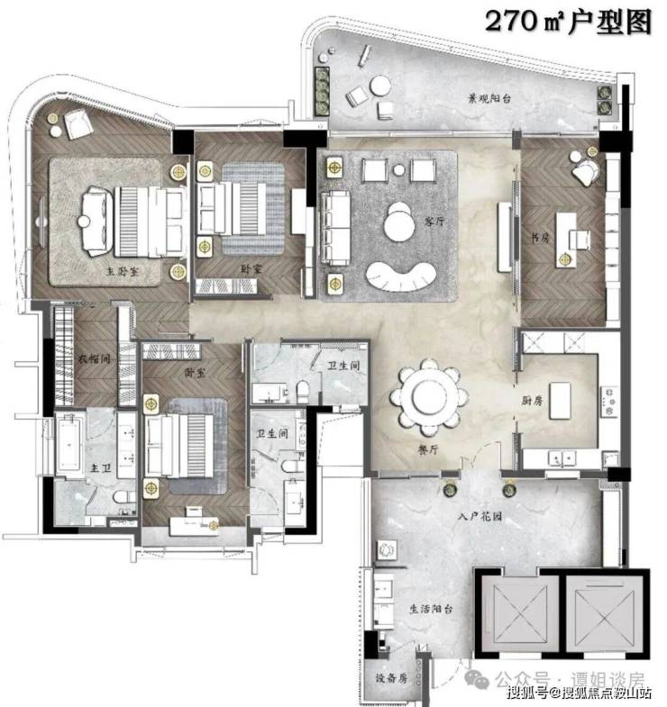 【A户型】王牌户型 270㎡环幕江景四房,约9米超大邮轮式阳台,一线望江无遮挡,专梯专户,墅级空中双花园,约28㎡超大私家庭院,多功能空间,约42㎡超大主卧空间,270°环幕江景,阔绰双主套房设计。