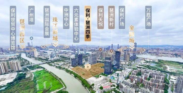 保利·琶洲四季位于正儿八经的琶洲中区,原名为保利琶洲108项目,是琶洲村的最后一处留用地。在海珠区新港东路琶洲村口对面,北临琶洲眼、保利天悦等成熟商业住宅区,南望羊城最大城市绿心“广州万亩果园”,西邻琶洲塔公园城市景观,东接黄埔古村及古港。