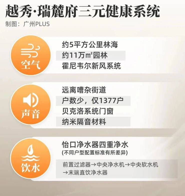 健康人居:采用“三元健康系统”(水质、空气、声音防护),搭配贝克洛系统门窗及霍尼韦尔新风系统,保障居住健康