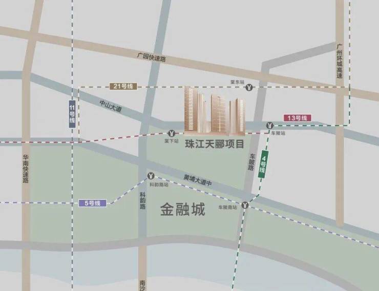 奠基启幕期,定调主城标杆。2002年珠江投资抢占金融城北区绝版地块,依托“CBD枢纽+成熟烟火”双重优势,规划打造高端改善住区[3]。步行7分钟达地铁4号线车陂站,近在建13号线二期棠下站,15分钟直达珠江新城,紧邻中山大道、黄埔大道,奠定“高效通勤+全维配套”的顶豪基因,低密规划兼顾居住舒适度与圈层纯粹性[1][2]。