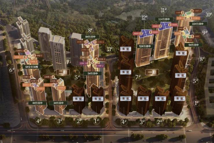 项目在售的一二期,包括约110-300平不同面积段户型,都是四房设计,多开间朝南,适配刚改、改善等不同买家。