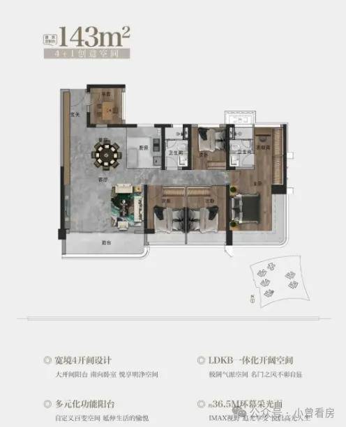 如果是人口较多的改善家庭,143㎡五房两卫会更合适。这个户型亮点不少,约15.4米面宽,采光面达到36.5米,客厅面宽5.7米,连接着宽景阳台,高层单位视野开阔。设置了双主卧,其中一个主卧面积约31㎡,带有独立衣帽间和主卫,居住舒适度很高。部分房源能看到社区园林景观,目前总价757万到866万之间,适合想一步到位的家庭。另外还有256㎡的大户型在售,具体可到售楼处了解详情。