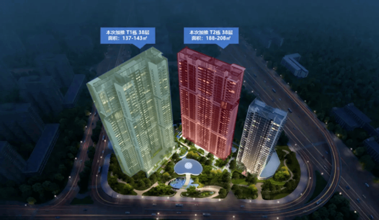 项目总共3栋楼,分为T1、T2和T3栋,T2栋和T3栋是由2栋楼连起来的,也有说是5栋楼。