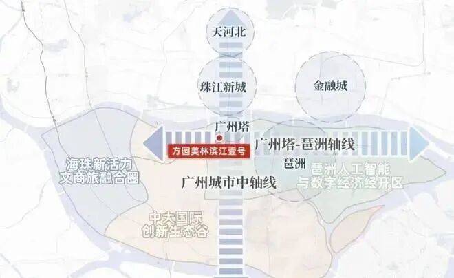 方圆美林滨江壹号乃是妥妥的中轴C位,而且还在珠江新城-广州塔、广州塔-琶洲两大轴线的交汇处,出生已经躺赢。