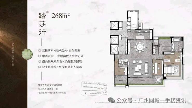 我们再来看看此次加推的268平的大面积户型,作为项目的旗舰,暗藏着哪些巧妙的设计?