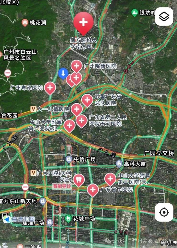 2公里南方医科大学南方医院和广州市中医医院。1.2公里广东省妇幼保健院、武警广东省总队医院。