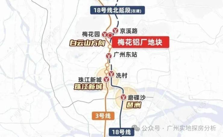 项目距离地铁3号线梅花园站仅350米,2站广州东,5站珠江新城,8站机场北。周边还有地铁18号线北延线京溪站预计2026年开通,开通后1站广州东站、2站冼村、3站琶洲。